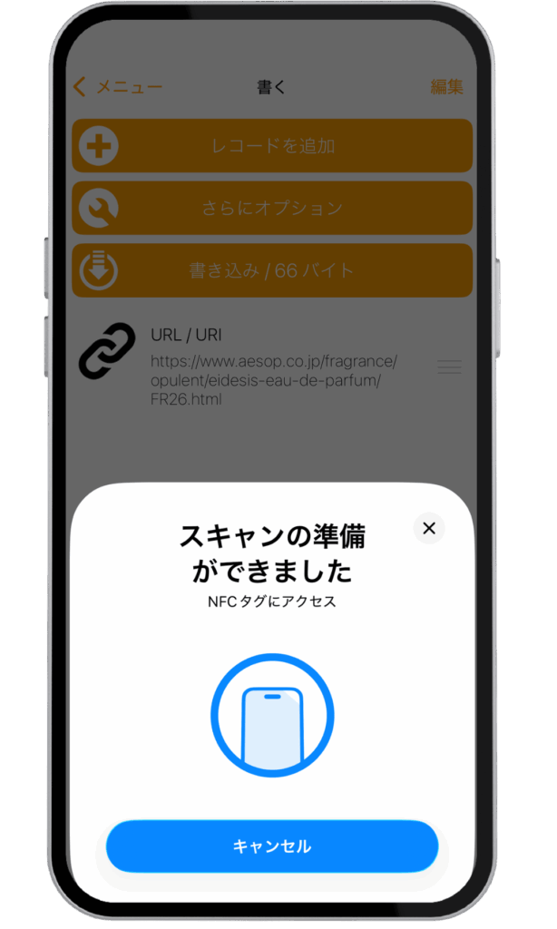 例えば、NTAG213だと約100文字まで、URLなどが書き込み可能です