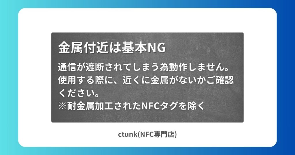 金属が近くになく、「NFCタグを安定して読み取れるコツ」でかざしても、入っているタグ全てが、思うように動作しない場合ガイドブックの最後のページより弊社へお問い合わせください。