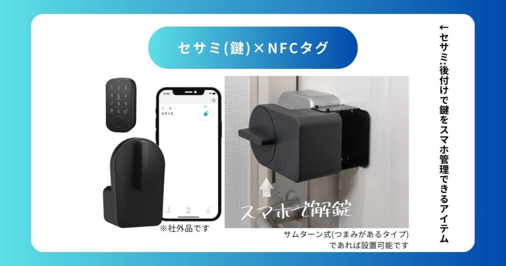 • 玄関付近にNFCタグ貼ってスマホをかざして解錠