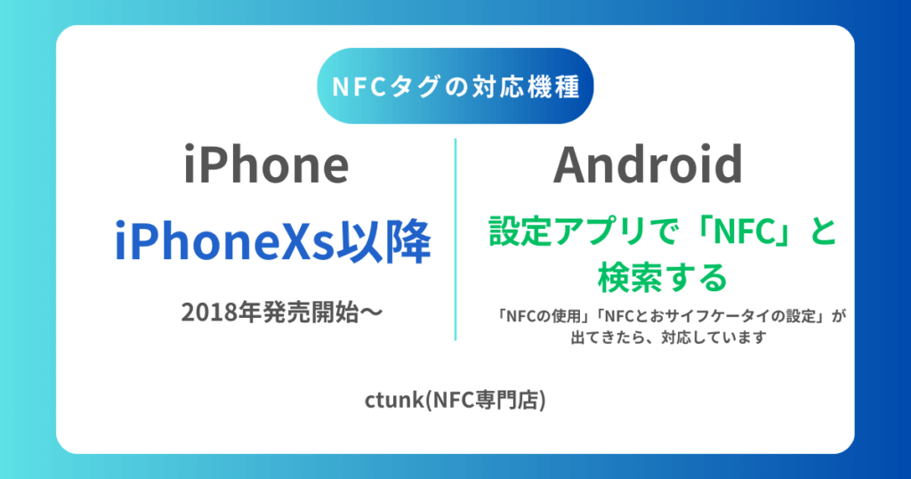 • スマホがNFCタグに対応しているか。iPhoneであればXs以降
