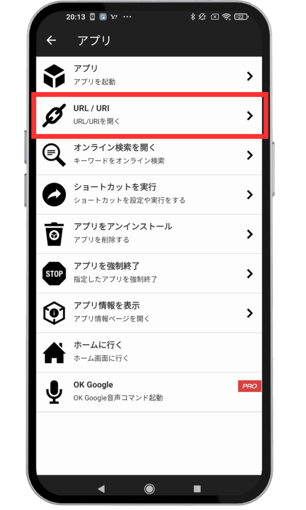 google検索、googleMAPなど、特定のキーワードを検索した画面へ飛ばすことができます。