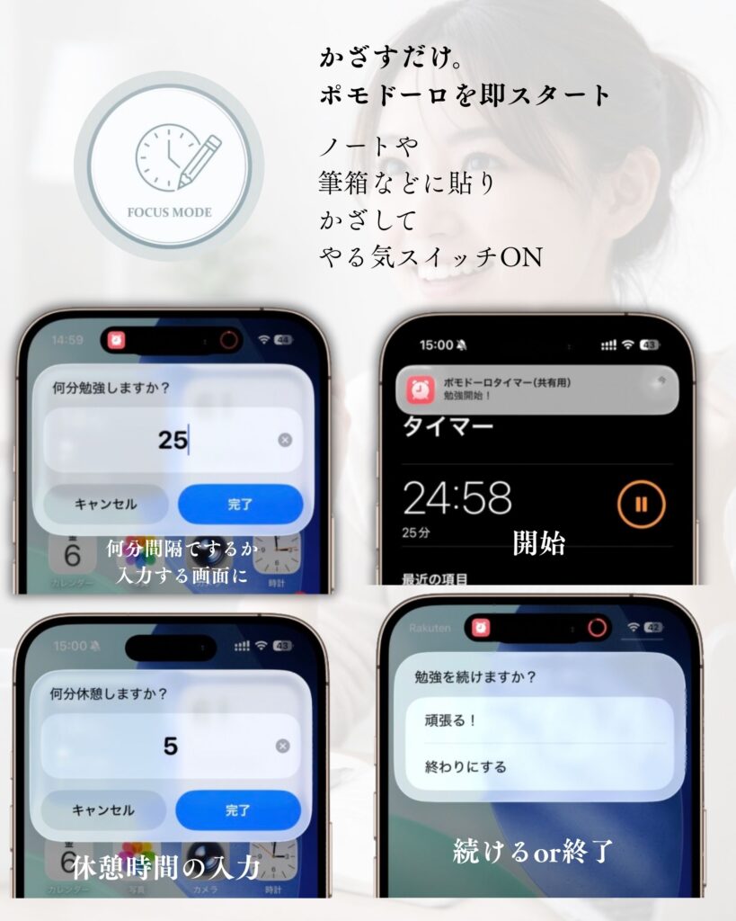 「NFCタグ」にスマホの頭をかざして、事前に書き込んでおいたアクションをさせることができます!