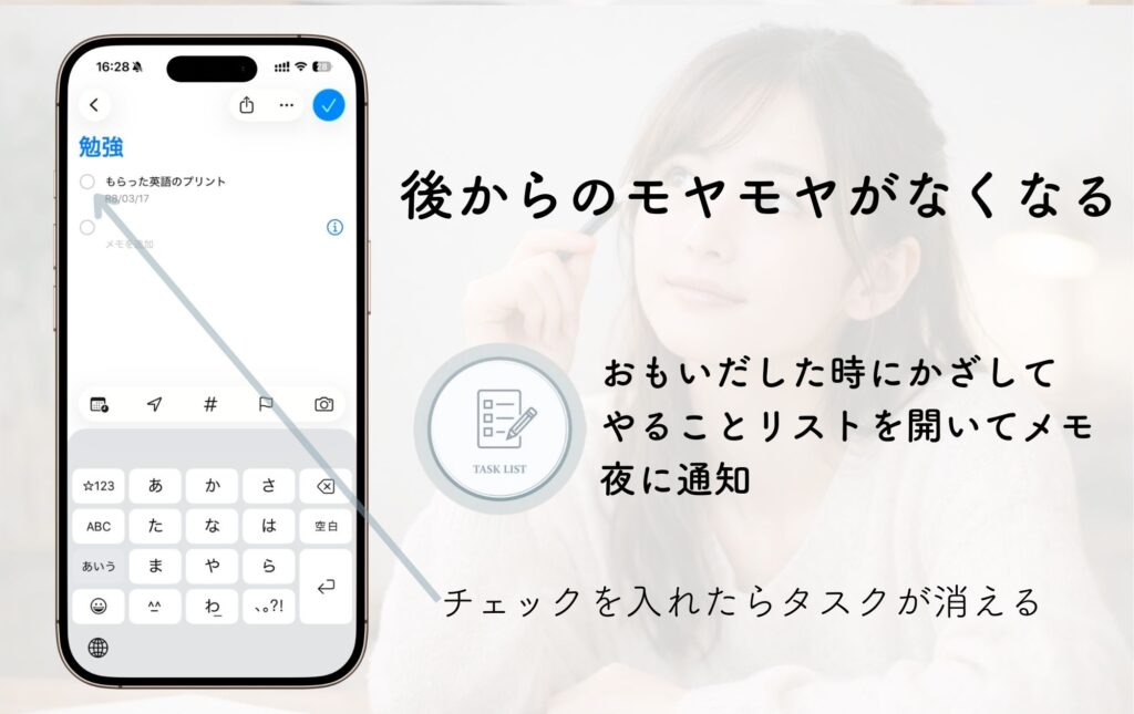 紙の付箋のように剥がれたり紛失したりする心配もありません。暗記カードの代わりに使えば、スマホひとつで手軽に復習が可能。