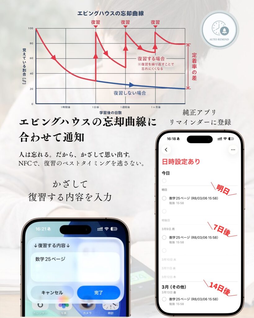 教科書やノートにNFCタグを貼って、スマホでかざすだけで関連資料や解説動画にアクセス。