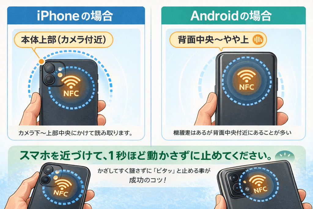 スマホを近づけて、1秒ほど動かさずに。